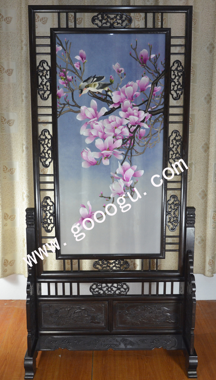 蘇繡精品玉蘭花/紫檀雙面繡、收藏精品畫/紅玉蘭、結婚禮品